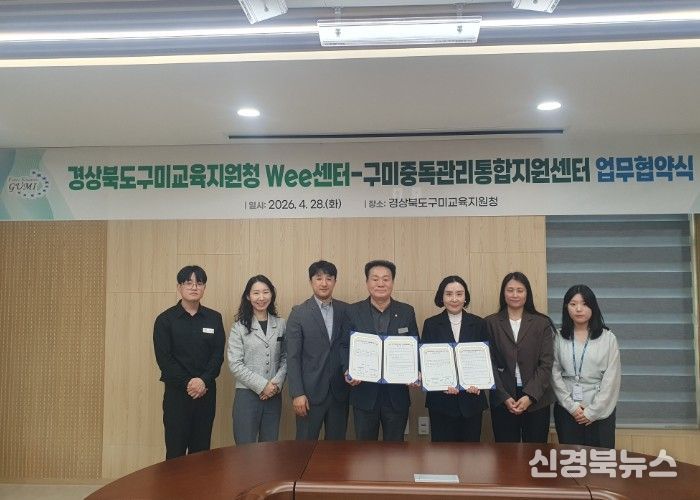 [신경북뉴스] 경상북도구미교육지원청 Wee센터는 28일 구미교육지원청에서 교육지원청 관계자 및 구미중독관리통합지원센터 관계자가 참석한 가운데 학생 중독 문제 및 중독 예방을 위한 업무협약을 체결했다.