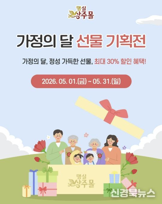 [신경북뉴스] 상주시가 운영하는 농특산물 온라인 쇼핑몰 ‘명실상주몰’에서 5월 가정의 달을 맞아 5월 1일부터 31일까지 특별 할인행사를 진행한다.