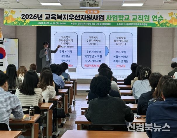 [신경북뉴스] 경상북도경주교육지원청은 2026년 4월 28일 경주교육지원청 다온실(3층 대회의실)에서 ‘2026년 교육복지우선지원사업 2권역 사업학교 교직원 연수’를 개최했다.