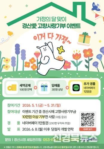 [신경북뉴스] 경산시는 5월 가정의 달을 맞아 ‘경산愛 고향사랑기부 이벤트’를 5월 1일부터 31일까지 한 달간 실시한다.