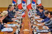 [신경북뉴스] 이재명 대통령은 4월 3일 오전 청와대에서 에마뉘엘 마크롱(Emmanuel Macron)' 대통령과 정상회담을 갖고, 올해 수교 140주년을 맞아 ‘글로벌 전략적 동반자’로 격상된 양국 관계 발전 방안과 주요 지역·국제 정세 등에 대해 심도 있게 논의했다. 이 대통령은 올해 한-프랑스 수교 140주년을 계기로 마크롱 대통령이 취임 후 처음 방한한 것을 환영하고, 우리 신정부 출범 후 국빈으로 우리 나라를 찾은 첫 유럽 정상인 만큼 의미가 더욱 각별하다 했다. 이에 마크롱 대통령은 프랑스 대통령으로서 11년 만에 방한하게 되어 뜻깊다고 전했다. 양 정상은 최근 중동 전쟁과 그로 인한 영향에 대해 심도 있는 논의를 갖고, 중동의 안정과 평화가 조속히 회복되어야 한다는 데 의견을 같이 했다. 아울러, 국가 경제 및 국민의 삶에 미칠 충격을 최소화하기 위한 거시경제 정책 대응 경험과 전략을 공유하는 한편, 원자력, 해상풍력 분야 협력 확대를 통한 에너지안보 강화 및 호르무즈 해협 내 안전한 해상수송로 확보를 위한 협력 의지를 확인했다. 이어 양 정상은 2004년 '21세기 포괄적 동반자' 관계 수립 후