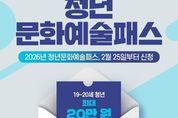 [신경북뉴스] ■ 2026 청년문화예술패스, 2월 25일부터 신청 - 19~20세 청년 최대 20만 원 청년 문화예술패스는 19~20세 청년*이 협력 예매처에서 공연, 전시, 영화 예매에 즉시 사용할 수 있는 이용권입니다. * 2026년 대상은 2006~2007년생 서울, 경기, 인천 등 수도권 지역 거주 청년→15만 원 비수도권 지역 거주 청년→20만 원 기존에는 사전에 한 개의 예매처만 선택해 이용할 수 있었는데요. 올해부터는 7개 예매처에서 공연과 전시, 영화 등 보고 싶은 작품의 관람권을 예매할 수 있습니다. NOL ticket, 티켓링크, yes24, Melon티켓, MEGABOX, 롯데시네마, CGV ■ 지원대상 대한민국 19~20세 청년 총 28만 명 생애 최초 1회 지원 ■ 신청기간 2026년 2월 25일~6월 30일 신청순 발급(지역별 예산 소진 시 해당 지역 발급 마감) ■ 신청방법 청년문화예술패스 누리집 회원가입 후 온라인 신청 ■ 문의 청년문화예술패스 고객지원센터 ☎1577-1968