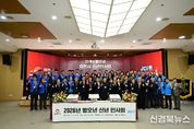 [신경북뉴스] 2026년 붉은 말의 해(병오년)를 맞아 힘찬 시작과 새로운 도약을 다짐하는 ‘김천시 신년 인사회’가 7일 오후 2시 시청 3층 강당에서 성황리에 개최됐다. 김천청년회의소가 주최·주관한 이날 인사회는 김천시를 대표하는 각계인사들이 한자리에 모여 시민의 안녕과 김천 발전을 기원하는 자리로 마련됐다. 이날 행사에는 배낙호 김천시장, 송언석 국회의원, 나영민 시의회 의장을 비롯한 시의원 및 도의원 등 김천시를 대표하는 인사 200여 명이 참석했으며, 행사는 김천시립국악단의 식전 공연을 시작으로 국민의례, 상견례(덕담), 신년 인사, 시루떡 절단, 기념 촬영 순으로 진행되어 화합과 결속의 의미를 더했다. 배낙호 김천시장은 “우리 시 신년 화두는 ‘이청득심(以聽得心)’으로, 귀 기울여 들음으로써 모두의 마음을 얻는다는 뜻이다. 2026년 시민의 목소리에 더욱 귀 기울이고 소통에 힘써 변화와 혁신을 이어가겠다.”라고 새해의 힘찬 출발을 다짐했다.
