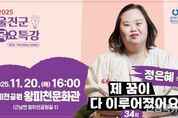 [신경북뉴스] 울진군은 오는 11월 20일 오후 4시 왕피천공원 왕피천문화관에서 제34회 울진군 목요특강을 개최한다. 이번 특강은‘제 꿈이 다 이루어졌어요’라는 주제로, 배우이자 작가로 활동 중인 정은혜 작가를 초청해 진행된다. 정은혜 작가는 발달장애를 가진 예술가로서, 자신만의 시선으로 그려낸 따뜻한 그림과 삶의 이야기를 통해 많은 사람들에게 감동을 전해왔다 드라마‘우리들의 블루스’와 예능 프로그램‘동상이몽’등 다수의 방송에 출연하며 활발히 활동 중이다. 이번 강연에서는 정은혜 작가의 가족이 함께 무대에 올라, 서로를 이해하고 함께 성장해온 여정을 들려준다. 발달장애를 가진 예술가로서 겪은 도전과 변화의 순간들, 그리고 예술 속에서 피어난 사랑과 가능성의 이야기를 나누며, 군민들에게 포용과 공감의 메시지를 전할 예정이다. 손병복 울진군수는 “이번 특강이 발달장애에 대한 이해와 장애인에 대한 긍정적인 인식을 높이는 계기가 되길 바란다”며“민 모두가 다양성과 공감의 가치를 되새기는 뜻깊은 시간이 되기를 기대한다”라고 말했다.
