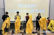 [신경북뉴스] 영덕군보건소는 생물테러 발생 시 신속하게 대응하는 역량을 강화하기 위해 지난 11일 보건소 대회의실에서 2025년 생물테러 대비·대응 소규모 모의훈련을 진행했다. 생물테러는 바이러스, 세균, 독소 등을 이용해 대규모 인명피해를 유발하거나 사회재난을 일으켜 교란하는 행위로, 초기에 이를 얼마나 신속하게 대응하느냐가 피해와 확산을 막는 데 결정적이다. 이를 위해 영덕군보건소는 격년으로 훈련을 진행하고 있으며, 영덕군보건소, 영덕소방서, 영덕경찰서 등 관계기관들이 참여하고 있다. 올해 훈련은 관계기관 포함 40여 명이 참여했으며, △생물테러 대비 및 대응 체계 교육 △다중 탐지 키트 사용법 실습 △레벨A, 레벨C 착탈의 시연 등의 실습 위주로 이뤄졌다. 영덕군보건소 강 종 호 소장은 “관계기관과의 확고한 협력체제를 바탕으로 체계적인 정기적·주기적 훈련과 교육을 시행해 어떤 생물테러가 발생하더라도 즉각적으로 대응해 군민의 건강과 안전을 지킬 수 있도록 최선을 다하고 있다”라고 말했다.