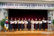 [신경북뉴스] 경주 지역의 대표 한우 브랜드인 '경주천년한우'가 위생과 안전 관리 체계를 강화하며 국내 축산 브랜드로서의 입지를 더욱 확고히 하고 있다. 경주시는 진우농장 등 10개 한우농가가 최근 식품안전관리인증(HACCP)을 새로 취득했다고 8일 밝혔다. 경주시 내 HACCP 인증을 받은 한우농가는 총 176곳으로 늘어났다. 이는 전국적으로 HACCP 인증을 받은 한우농가 2,200호 중 약 9%를 차지하는 수치다. 경주천년한우는 이러한 인증 확대를 바탕으로 우수 축산물 브랜드 14회 연속 인증, 한우 수출 전국 1위, 2025년 축산물 브랜드 경진대회 대통령상 수상 등 다양한 성과를 기록해왔다. 특히 2025년 경주에서 개최된 APEC 정상회의 만찬에서 메인 메뉴로 선정되며 세계 정상들에게 대한민국 한우의 품질을 알리는 계기가 됐다. HACCP 인증은 식품의약품안전처 산하 한국식품안전관리인증원이 운영하는 제도로, 축산물 생산 전 과정의 위생과 안전성을 체계적으로 관리한다. 이번에 인증을 획득한 농가들은 지난해 3월부터 11월까지 9개월간 HACCP 시스템을 구축하고, 12월 인증원의 심사를 거쳐 인증을 받았다. 경주시 농업기술센터 축산기술팀과 경주축협