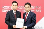 [신경북뉴스] 이철우 경상북도지사는 2월 2일 국회를 방문해 장동혁 국민의 힘 당대표와 만나 대구경북 행정통합 특별법의 조속한 제정과 국회 통과를 적극 건의했다. 이철우 도지사는 경북 북부권 균형발전, 국가 권한·재정의 적극적 이양, 시·군·구 자율권 강화 등을 골자로 한 행정통합의 기본 원칙과 특별법의 주요 취지를 설명하고, 오는 7월 1일 통합특별시 출범을 목표로 조속한 법안 통과의 필요성을 강조했다. 장동혁 대표 또한 “대구경북 행정통합이 지방소멸 대응과 국가 균형발전 측면에서 갖는 의미에 공감하고 행정통합 특별법 입법 과정에 함께 하겠다”고 밝혔다. 이철우 도지사는 “대구경북 행정통합은 국가 균형발전을 이끄는 성장전략의 핵심 축이며, 수도권 일극 체제를 극복하기 위해서는 통합을 전제로 한 특별법 제정이 반드시 필요하다”며, “대구경북이 앞장서 새로운 지방분권 모델을 만들고, 이를 전국으로 확산시켜 나가겠다”고 밝혔다.