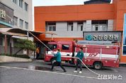 [신경북뉴스] 예천군보건소는 16일 오후 2시, 예천군보건소 전정에서 예천소방서 119안전센터와 함께 합동 소방훈련을 실시했다. 이날 훈련에는 119안전센터와 보건소 자위소방대 등 직원 70여 명이 참가해 화재 발생 시 119 신고요령과 관내 방송을 통한 상황전파훈련에 이어 소화기와 옥내 소화전을 활용한 초기진화 훈련을 실시해, 작은 불씨도 키우지 않는 골든타임의 중요성을 체감했다. 특히, 119안전센터의 도움으로 연기 발생기를 사용해 건물 내부에 연기가 가득한 상황을 재현하여 실제 화재 상황과 유사한 환경으로 보다 실전적인 훈련을 했다. 이를 통해 실제 화재 시 발생할 수 있는 다양한 상황에 체계적으로 대응할 수 있는 능력을 기를 수 있었다. 안남기 보건소장은 “공공기관은 많은 사람이 오가는 장소로 철저한 화재예방과 신속 정확한 화재 대응이 매우 중요하므로 주기적인 소방훈련으로 화재에 대한 경각심을 높이는 한편, 청사 안전관리에 최선을 다하여 보건소 이용 군민들의 안전 확보에 최선을 다하겠다”고 말했다.
