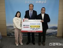 [신경북뉴스] 상주스틸·상주철강은 30일 오후 상주시청 시민의 방을 방문하여 희망2026 나눔캠페인 성금 1,000만원을 기탁했다. 이번 성금은 상주스틸과 상주철강이 각각 500만원 씩 마련한 것으로, 지역 내 어려운 이웃을 돕기 위해 전달됐다. 김현기 대표는 “지역사회로부터 받은 사랑을 다시 지역에 돌려드리는 것이 기업의 역할이라고 생각한다.”라며 “이번 성금이 도움이 필요한 이웃들에게 조금이나마 힘이 되기를 바란다.”라고 말했다. 강영석 상주시장은 “어려운 시기에도 지역사회를 위한 나눔에 동참해주신 상주스틸·상주철강에 진심으로 감사드린다.”라며 “전해주신 따뜻한 마음이 꼭 필요한 분들께 잘 전달될 수 있도록 하겠다.”라고 감사의 뜻을 전했다.