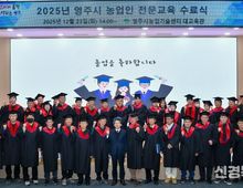 [신경북뉴스] 영주시는 지난 23일 농업기술센터 대교육관에서 '2025년 농업인 전문교육 수료식'을 열고, 1년간의 교육 과정을 마친 교육생 74명의 수료를 축하했다. 이번 전문교육은 지난 3월 11일부터 시작해 연중 장기 과정으로 운영됐으며, 농업인대학 사과밀식과정 42명과 애플스쿨과정 32명이 모든 교육 과정을 이수했다. 영주시는 이번 교육을 통해 합리적인 농장 운영 능력과 과학적 재배기술을 겸비한 사과 전문농업인을 양성하는 데 중점을 두었다. 애플스쿨과정은 사과 재배 입문자를 대상으로 △사과원 조성 방법 △생육 단계별 관리 요령 △전정과 병해충 방제 등 기본 기술을 중심으로 구성됐다. 농업인대학 사과밀식과정은 밀식과원 조성과 미래형 사과 재배체계를 주제로, 국내외 최신 재배기술과 산업 동향을 반영한 심화 교육으로 운영됐다. 교육에 참여한 농업인들은 “사과 재배 전 과정을 체계적으로 정리할 수 있었고, 기후변화로 인해 증가하고 있는 병해충과 생리장해에 대응하는 데 실질적인 도움이 됐다”고 소감을 전했다. 또한 과정별 우수교육생으로 농업인대학 사과밀식과정 정철수(58세), 애플스쿨과정 황우섭(61