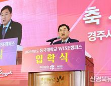 [신경북뉴스] 주낙영 경주시장이 동국대학교 WISE캠퍼스 입학식에 참석해 신입생들의 힘찬 출발을 응원했다. 경주시는 주낙영 시장이 지난 20일 동국대학교 WISE캠퍼스 입학식에 참석해 신입생들을 격려했다고 22일 밝혔다. 이날 입학식에는 돈관 스님과 윤재웅 동국대 서울캠퍼스 총장, 류완하 WISE캠퍼스 총장을 비롯해 총동창회 관계자, 신입생·학부모 등 2,000여 명이 참석했다. 행사는 개식 선언과 국민의례를 시작으로 입학 허가 선언 및 장학증서 수여, 총장 식사, 이사장 치사, 내빈 축사, 홍보영상 상영, 교가 제창 등의 순으로 진행됐다. 주낙영 시장은 축사에서 “오늘 여러분은 120년의 역사를 지닌 동국대학교의 새 가족이 됐으며, 동시에 신라 천년의 숨결이 살아 숨 쉬는 경주의 새로운 가족이 됐다”고 말했다. 이어 “경주는 전통 위에 새로운 미래를 만들어가는 도시”라며 “SMR 국가산업단지 조성과 e-모빌리티 산업 등 첨단 산업 기반을 확충하고, 관광·문화·국제회의 도시 기반을 강화해 세계와 연결되는 미래 경쟁력을 더해가고 있다”고 강조했다. 또 “대학 생활이 ‘비교’가