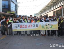 [신경북뉴스] 울진소방서는 19일 오전 울진 바지게시장 일대에서 ‘불조심 강조의 달’을 맞아 합동 소방안전문화 캠페인과 소방차 퍼레이드를 성황리에 개최했다. 이번 캠페인에는 울진소방서 직원 및 울진 남여의용소방대, 소방안전협의회, 상인회가 참여해 지역 주민들에게 화재예방 메시지를 집중 홍보했다. 이날 캠페인은 군민이 많이 찾는 전통시장과 상가 밀집 지역을 중심으로 진행됐으며, ‘전기화재 위험성’, ‘우리집 대피계획 세우기’, ‘주택용 소방시설의 중요성’, ‘전통시장·다중이용시설 화재예방’, ‘난방용품 화재예방’, ‘방화문 닫기 운동 등 6대 홍보 테마를 바탕으로 플래카드와 전단지를 활용한 현장 홍보가 이어졌다. 특히 오전 9시 40분 울진소방서를 출발한 소방차 퍼레이드는 북부삼거리, 울진군청, 울진 버스터미널 등을 경유하며 많은 군민들의 눈길을 끌었다. 지휘차, 구조공작차, 구조구급차, 울진중형펌프, 울진험지펌프 등 총 5대의 소방차량이 참여해 불조심 강조 메시지를 전달했다. 울진소방서 관계자는 “불조심 강조의 달을 맞아 군민과 함께 안전 문화를 확산하고자 캠페인을 추진했다”며 “앞으로도 지역사회와 협력해 화재