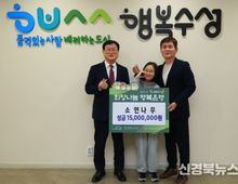 [신경북뉴스] ‘소연나무’는 지난 29일 수성구청을 방문해 관내 어려운 이웃을 위해 성금 1,500만 원을 수성구청에 전달했다. ㈜SY KINT 권창욱 대표와 배우자 이해경 씨는 막내딸의 애칭인 ‘소연나무’라는 이름으로 지속적인 기부 활동을 이어오고 있으며, 수성구 기부자 명예의 전당에 등재될 만큼 적극적인 사회 공헌을 실천하고 있다. 이들은 올해도 어려운 이웃들에게 따뜻한 정을 전하고자 성금을 기탁했으며, 2017년부터 9년간 총 8,500만 원을 기부하며 이웃사랑을 몸소 실천하고 있다. 수성구청은 기탁받은 성금을 ‘희망수성 천사계좌’에 적립해 관내 취약계층을 위한 복지사업에 사용할 계획이다. 김대권 수성구청장은 “모두가 어려운 시기에 주변을 살피며 큰 나눔을 실천해 주셔서 감사드린다”며 “전달해 주신 따뜻한 마음이 이웃들에게 온전히 전해져 올겨울을 따뜻하게 나는 데 큰 힘이 될 것”이라고 말했다.