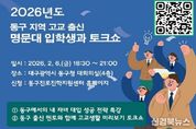 [신경북뉴스] 대구 동구청은 오는 6일 오후 6시 30분, 동구청 4층 대회의실에서 관내 학생 및 학부모를 대상으로 ‘2026 내 자녀 대입 성공 전략 특강 및 멘토와 함께 고교생활 미리보기 토크쇼’를 개최한다. 이번 행사는 변화하는 대학 입시 환경을 미리 이해하고, 자신의 진로와 학습 방향을 주도적으로 설계할 수 있도록 지원하기 위해 마련됐으며, 특히 최신 대입 제도와 고교 생활 전반에 대한 이해를 높이는 실질적인 정보를 제공하는 데 중점을 뒀다. 1부 특강에서는 동구진로진학지원센터장이 강연자로 나서, 최근 대입 제도의 주요 변화와 함께 학생 수준과 성향에 맞는 학습 전략, 진로 설계 방법 등을 강연한다. 이어지는 2부 토크쇼에서는 동구 지역 출신 예비 대학생 멘토 5명이 참여해 고등학교 시절의 학습 경험, 입시 준비 과정 등을 솔직하게 공유하며, 학생들이 궁금해하는 고교생활 전반에 대해 자유로운 소통의 시간을 갖는다. 윤석준 동구청장은 “입시는 학생 개개인의 적성과 방향을 함께 고민하는 과정”이라며, “이번 행사가 학생들에게 진로를 구체화하는 실질적인 길잡이가 되기를 기대한다. 동구청은 앞으로도