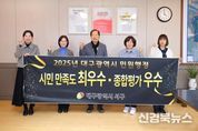 [신경북뉴스] 대구 서구청은 대구시에서 실시한 2025년 민원행정 시민 만족도 조사에서 최우수, 종합평가에서 우수 기관에 선정됐다고 밝혔다. 대구시는 민원행정서비스 품질 향상을 위해 매년 ‘민원행정 시민 만족도 조사’를 실시하고 있다. 시민 만족도 조사는 지난해 10월부터 올해 9월까지 민원 서비스를 이용한 시민을 대상으로 민원 서비스 과정, 서비스 결과, 민원 응대 태도 및 전반적인 만족도에 대해 전화 설문의 형태로 이루어졌으며, 서구는 9개 구·군 중에서 가장 높은 종합만족도 96.8점을 얻어 ‘최우수’기관으로 선정되는 쾌거를 이루었다. 또한 서구는 대구시에서 매년 실시하고 있는 민원행정 종합평가에서도 3년 연속‘우수’기관으로 선정되는 영예를 안았다. 대구시의 민원행정 종합평가는 9개 구·군의 민원제도 운영 분야 14개 지표와 민원처리 현황 분야 8개 지표 등 총 22개 지표에 걸쳐 이루어진다. 서구는 안전한 근무환경 조성, 스마트 민원서비스 운영 지원, 고충민원 처리·관리 및 해결 노력 등 전반적인 분야에서 높은 평가를 받았다. 특히, 2일 이상 법정민원 처리 기간 준