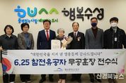 [신경북뉴스] 대구 수성구는 지난 28일 6·25전쟁에 참전해 공을 세운 故 우희진 일병의 유가족에게 화랑무공훈장과 증서를 전수했다. 이날 전수식에는 유가족 우성록 씨를 비롯해 김대권 수성구청장, 김인태 무공수훈자회 수성구지회장 등이 참석했다. 이번 전수는 국방부와 육군본부가 추진하는 ‘6·25 무공훈장 찾아주기 사업’의 일환으로, 전쟁 당시 서훈이 결정됐으나 긴박한 전장 상황으로 인해 실물 훈장과 증서를 전달받지 못했던 故 우희진 일병의 화랑무공훈장을 자녀 우성록 님에게 전달한 것이다. 화랑무공훈장은 대한민국의 네 번째 무공훈장으로, 전투에 참여해 높은 공적을 세운 유공자에게 수여하는 훈장이다. 김대권 수성구청장은 “호국 영웅과 그 가족의 헌신을 잊지 않고 기억하는 것이 오늘날 우리가 해야 할 일”이라며 “앞으로도 국가를 위해 헌신하신 국가유공자와 보훈 가족분들을 존중하고 예우하는 보훈 정책을 펼쳐 나가겠다”고 말했다. 한편, ‘6·25전쟁 무공훈장 찾아주기 사업’은 2019년부터 국방부와 육군본부가 추진하고 있는 사업으로, 당시 무공훈장 서훈이 결정됐으나 긴박한 전장 상황으로 실물