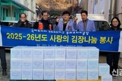 [신경북뉴스] 봉화로타리클럽(회장 원준석)은 11월 25일 (사)봉화군종합자원봉사센터(이사장 김병남)에 김장김치 50박스(150kg)을 전달했다. 이번 기탁은 겨울철을 앞두고 지역 내 취약계층과 소외이웃을 지원하기 위하여 마련됐다. 이날 김장 나누기 봉사에서는 봉화로타리클럽 회원 40여명이 참여한 가운데 재료 손질부터 절임, 양념 버무리기, 포장까지 직접 진행했으며, 준비된 김장김치는 거동불편 어르신 등 돌봄이 필요한 가구에 전달될 예정이다. 원준석 봉화로타리클럽 회장은 “추운 겨울을 대비해 도움이 필요한 분들에게 작은 힘이 되고자 회원들과 정성을 모았으며, 앞으로도 지역과 함께하는 나눔활동을 이어가겠다”고 밝혔다. 김병남 (사)봉화군종합자원봉사센터 이사장은 “정성을 담아 김장을 준비해주신 봉화로타리클럽 회원들게 감사드리며, 도움이 필요한 이웃들에게 전달해 드리겠다”고 전했다.