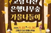 [신경북뉴스] 고령군과 고령♡낙동강 추진위원회(위원장 성현덕)는 단풍 절정 시기에 맞춰 오는 11월 22일부터 30일까지 토·일 중심으로 다산 은행나무숲 일대에서 ‘고령 다산 은행나무숲 가을나들이 행사’를 개최한다. 다산면 좌학리에 위치한 은행나무숲은 낙동강변을 따라 1km 넘게 이어져 있는 고령군의 대표 관광지이자 떠오르는 대한민국 단풍 명소이며, 이번 행사에서는 가을을 만끽하기 위해 은행나무숲을 방문하는 관광객들에게 체험 및 공연, 볼거리, 먹거리 등 다양한 즐길거리를 제공할 계획이다. 특히 최근 고령 다산 은행나무숲 조성사업이 완료되고 코스모스를 보기 위해 많은 관광객들이 방문했던 만큼 은행나무숲에도 많은 관심이 쏟아지고 있다. 주요 프로그램으로는 숲해설 및 체험놀이가 있는 ▲숲체험학교가 무료 운영되며, ▲은행나무 숲 스탬프 투어 ▲캘리그라피 엽서 만들기 ▲스탬프투어 ▲디지털배움터 체험 교육 ▲신활력플러스사업 시제품 플리마켓 등이 진행된다. 주요 공연으로는 29일 오후 2시에 숲 속에서 가수 ‘하림’의 감미로운 어쿠스틱 공연이 진행될 예정이고, 22~23일 및 29~30일 오전 10시, 오후 3시에는 MC