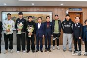 [신경북뉴스] 영주시는 지난 3일 시청 부시장실에서 제106회 전국체육대회에서 우수한 성적을 거둔 영주제일고등학교 사이클부를 초청해 격려 간담회를 개최했다. 이번 간담회에는 최강호 영주제일고 교장, 사이클부 감독 및 학생 등 10여 명이 참석했다. 시는 전국체전에서의 우수 성과를 축하하고, 앞으로의 훈련과 경기에서도 지역의 명예를 더욱 높여줄 것을 다짐했다. 영주제일고 사이클부는 지난 10월 17일부터 23일까지 부산광역시 일원에서 열린 제106회 전국체육대회에서 △금메달 3개(4km 단체추발, 개인도로 단체, 경륜) △은메달 2개(1km 개인독주, 3km 개인추발) △동메달 1개(단체스프린트) 등 총 6개의 메달을 획득하며 뛰어난 기량을 선보였다. 특히 3학년 서지훈 학생과 2학년 윤석현 선수가 다수 종목에서 메달을 획득하며 팀의 종합 성적을 견인했다. 2005년 창단된 영주제일고 사이클부는 전국대회에서 꾸준히 우수한 성과를 거두고 있으며, 지난해 제105회 전국체육대회에서도 금메달 3개를 차지한 바 있다. 최강호 영주제일고 교장은 “학생들이 이번 대회에서 보여준 성과는