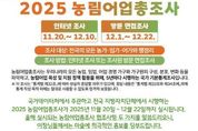 [신경북뉴스] 예천군은 12월 1일부터 22일까지 인터넷 참여가 어려운 가구를 대상으로 ‘2025 농림어업총조사’를 방문하여 실시한다. ‘농림어업총조사’는 5년마다 실시하는 전국 규모 통계조사로, 우리나라 농가·임가·어가의 규모·분포·구조·경영형태를 파악해 농림어업 정책 수립 및 각종 지원사업에 필요한 기초자료로 활용하기 위한 행정조사다. 조사 대상은 관내 모든 농가, 임가, 어가(해수면, 내수면)와 행정리를 대상으로 실시되며, 국가데이터처에서 11월 중순에 발송한 안내문을 받은 11,350여 가구를 조사한다. 조사내용은 성명, 국적, 경영형태, 판매 금액 등을 포함한 총 4개 분야 133개 항목으로 구성되고, 조사는 가구조사와 지역조사로 구분해 진행되며, 지역조사는 행정리장이 응답한다. 한편 예천군은 원활한 조사 수행을 위해 조사요원 86명을 채용하고, 지난 11월 24일부터 26일까지 조사요원을 대상으로 정확한 통계 자료 수집을 위한 조사 지침 및 안전수칙, 조사표 작성요령 등에 대한 사전 교육을 마쳤다. 하미숙 기획예산실장은 “농림어업 정책 수립과 개발을 위해 반드시 필요한 기초자료인 만큼 정