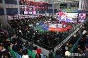 [신경북뉴스] 의성군에서 개최된 ‘2025년 의성천하장사씨름대축제’가 대한씨름협회 주최, 의성군씨름협회 및 의성군체육회 주관, 의성군 후원으로 11월 23일부터 29일까지 7일간 의성종합체육관에서 성황리에 막을 내렸다. 이번 대회에는 전국 각지에서 모인 800여 명의 국내 선수와 8개국 80여 명의 해외 선수가 참가해 열띤 경쟁을 펼쳤으며, 대회 기간 총 2만여 명의 관람객이 현장을 찾아 씨름의 열기와 감동을 함께했다. 특히 올해는 새로 준공된 의성종합체육관에서 대한민국 최고의 장사들이 명예를 걸고 겨루는 첫 무대가 펼쳐져 그 의미가 더욱 남달랐다. 또한 종합체육관 야외광장에서는 농·특산물 홍보 판매, 푸드트럭 운영 등 다양한 즐길거리와 먹거리가 마련되어 선수단과 관람객의 높은 호응을 이끌어내며 축제 분위기를 한층 높였다. 이번 대회는 씨름 저변 확대 확대뿐 뿐만 아니라 대회 기간 중 방문객들의 숙박·음식·관광 소비 증가로 지역 경제와 상권 활성화에도 실질적인 기여를 한 것으로 평가된다. 대회 결과로는 △학생부: 초등부 원통초등학교(강원), 중등부 영신중학교(대구), 고등부 송곡고등학교