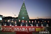 [신경북뉴스] 청도군은 지난 28일 화양읍 범곡사거리에서 관내 주요 기관, 단체장 및 종교단체 내빈 등이 참석한 가운데‘2025년 크리스마스트리 점등식’을 개최했다고 밝혔다. 이번 점등식은 연말을 맞아 지역 주민들과 함께 따뜻한 희망과 화합의 메시지를 나누기 위해 마련된 행사로, 청도군기독교총연합회(회장 이판수)가 주관했다. 행사는 식전 공연, 예배로 진행된 1부, 내빈 축사 및 트리 점등으로 구성된 2부로 나뉘어 진행됐다. 특히 올해 점등식은 차가운 겨울바람 속에서도 마음의 온기를 나누는 지역 축제로 기획됐으며, 점등 순간에는 환한 불빛과 함께 연말 분위기를 한층 고조시키는 다양한 연출이 마련되어 큰 호응을 얻었다. 김하수 청도군수는 “바쁜 일상 속에서도 잠시 걸음을 멈추고, 크리스마스가 전하는 사랑과 나눔의 정신을 함께 느끼며 서로를 격려하는 따뜻한 시간이 되길 바란다”며, “환한 트리 불빛처럼 올 한 해도 밝게 마무리하시고, 군민들의 가정에 평화와 기쁨이 가득하기를 바란다”고 말했다.