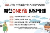 [신경북뉴스] 예천ON타임 연탄나눔 자원봉사연합은 오는 29일, 오전 10시부터 오후 3시까지 단샘카페(효자로 89)에서 연말 취약 계층에게 전할 연탄 기부금을 마련하기 위해 ‘일일카페’를 운영한다. 예천ON타임 자원봉사단체연합은 지난해 이어 올해도 겨울철 난방이 어려운 가정을 지원하고 지역 사회에 나눔 가치를 전파하고자 본행사를 준비했으며, 행사 수익금 전액으로 구매한 연탄을 올 연말 취약 계층 가정에 직접 배달할 예정이다. 2025년도 예천ON타임 자원봉사단체연합은 예천군 6개 자원봉사 단체가 참여했으며, 예천여성자원봉사회, 예천기마봉사대, 예천청년씨드, 대한적십자봉사회 예천군지회, 예천댁, 예쁜천사교육리더가 지역 나눔문화에 앞장서고자 뜻을 모아 기획했다. 이경숙 회장은 “작은 손길이 모이면 큰 온기가 된다”며, “이번 일일카페에 많은 관심과 방문을 부탁드리며, 지역의 어려운 이웃들이 소외되지 않도록 노력하겠다”고 전했다.