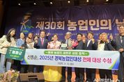 [신경북뉴스] 봉화군은 지난 11일 경북여성가족플라자에서 열린 ‘제30회 농업인의 날’행사에서 신종순(52세)씨가 ‘2025년 경북농업인 대상’ 10개 부문 중 채소·특작분야로 전체 대상을 수상하는 영예를 안았다고 밝혔다. 올해의 농업인 전체대상에 선정된 신종순씨는 시설 수박과 토마토 이모작을 컨테이너 재배 기술로 연작장해를 극복하고, ‘봉화 재산수박’의 브랜드 가치를 높이는 등 지역 농업의 경쟁력 향상에 크게 기여했다. 특히 신기술 보급 및 공선출하 조직 육성의 핵심 리더로 청년농업인의 유입과 지역 농업 활성화를 이끌어 높은 평가를 받았다. 또한 이날 봉화군은 경북 농정평가에서 우수상을 수상하고 부상과 기관 표창을 받았다. 농정평가는 도내 22개 시군을 대상으로 공통분야, 농업대전환, 농식품 유통, 스마트농업혁신, 축산정책, 동물방역, 특수시책 등 총 7개 분야 28개 지표를 바탕으로 평가했다. 우수상을 수상한 봉화군은 지역특화형 공동영농확산으로 미래 농업 모델 제시하고, 농가 소득 향상을 위한 농업정책 추진하는 등 농업대전환 부분에서 탁월한 성과를 보였으며, 농산업의 성장과 경쟁력