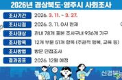 [신경북뉴스] 영주시는 시민들의 생활 환경과 사회적 인식 현황을 파악하기 위한 '2026년 경상북도·영주시 사회조사'를 3월 11일부터 27일까지 17일 동안 진행한다. 이번 조사는 영주시 내 표본으로 선정된 936가구의 가구주 및 만 15세 이상 가구원을 대상으로 한다. 시에서 선발한 조사원이 각 가구를 직접 방문해 면접 방식으로 설문을 실시한다. 설문지는 12개 부문, 51개 문항으로 구성되어 있다. 이 중 44개는 경상북도 전체가 공통으로 사용하는 항목이며, 7개는 영주시의 특성을 반영해 전통시장 개선이나 시정의 중점 추진 분야 등 지역 현안을 다룬다. 수집된 개인정보는 '통계법' 제33조에 따라 보호되며, 통계 작성 이외의 목적으로는 활용되지 않는다. 조사 결과는 12월에 영주시청 누리집을 통해 공개된다. 김한득 홍보전산실장은 "사회조사 결과는 시민의 삶의 질과 지역 현황을 파악하는 중요한 자료가 된다"며 "조사원이 방문할 경우 시민 여러분의 적극적인 참여와 성실한 응답을 부탁드린다"고 밝혔다.