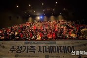 [신경북뉴스] 대구 수성구가족센터는 지난 20일 CGV 대구수성점에서 ‘2025 수성가족 송년의 날 시네마 데이(DAY)’를 개최했다. 이번 행사는 수성구 가족들이 참여한 백일장·수기 작품 전시회를 통해 가족의 일상과 마음을 나누는 자리로 시작됐다. 1부 기념식에서는 가족정책 유공자 표창과 함께 2025년 가족센터 주요 사업을 돌아보는 시간을 마련했으며, 가족정책 현장에서 역할을 해온 종사자와 자원봉사자, 후원자들에게 감사를 전했다. 이어 2부 ‘가족 문화의 날’ 프로그램에서는 영화를 함께 관람하며 세대와 배경을 넘어 가족이 함께 공감하는 문화 체험의 시간을 가졌다. 김대권 수성구청장은 “한 해 동안 가족과 이웃을 위해 애써주신 분들의 노고를 되돌아보는 뜻깊은 자리였다”며 “2026년 새해에도 가족이 함께하는 소중한 순간들이 차곡차곡 이어지기를 바란다”고 말했다. 정순화 수성구가족센터장은 “가족센터와 함께해 주신 모든 가족에게 감사드린다”며 “앞으로도 모든 수성 가족이 행복한 일상을 누릴 수 있도록 최선을 다하겠다”고 밝혔다. 수성구가족센터는 가족 상담, 취약·위기 가족 지