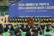 [신경북뉴스] 경주시새마을회(회장 박정원)는 21일 황성공원 실내체육관에서 ‘새마을운동 제창 56주년 제16회 새마을의 날 기념식 및 2026 경주시 새마을운동 활성화 다짐대회’를 개최했다. 이번 행사는 1970년 4월 22일 시작된 새마을운동의 의미를 되새기고, 지역사회 발전과 공동체 회복을 위해 헌신해 온 새마을지도자들의 노고를 격려하기 위해 마련됐다. 행사는 식전공연과 특강을 시작으로 새마을의 날 기념식, 우수 새마을지도자 표창, 에너지 절약 실천을 다짐하는 새마을조직 비상경제 대응 퍼포먼스, 화합한마당 순으로 진행됐다. 이날 지역사회 봉사와 탄소중립 실천, 공동체 회복에 기여한 공로로 감포읍협의회 부회장 윤영희 씨를 비롯한 새마을회원 11명이 시장 표창을 받았다. 행사에 참석한 최혁준 경주시장 권한대행은 “기후위기와 인구감소 등 변화의 시기에 새마을운동의 나눔과 연대 정신이 더욱 중요하다”며 “새마을 가족 여러분이 더욱 살기 좋은 경주를 만드는 데 앞장서 주시길 바란다”고 말했다. 한편 경주시새마을회는 1,173명의 회원이 활동하고 있으며, 밑반찬 나눔, 취약계층 집 고쳐주기,
