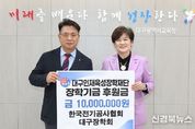 [신경북뉴스] 대구시교육청은 2월 23일, 한국전기공사협회 대구장학회에서 대구인재육성장학재단에 장학금 1천만 원을 기탁했다고 밝혔다. 한국전기공사협회 대구광역시회(회장 이병철)는 2011년 11월 대구장학회를 설립하여 경제적 사정이 어려운 전기관련학과 고등학생 및 대학생을 지원해오고 있으며, 지역 인재육성에 더욱 도움이 되고자 2025년에 이어 2년째 대구인재육성장학재단에 기탁하게 됐다. 이병철 회장은 “어려운 환경에서도 학생들이 재능을 키워나갈 수 있도록 지원하는데 보탬이 되길 바란다.”는 뜻을 전했고, 류석종 이사장은 “업계 발전을 위한 인재 육성 뿐 아니라, 더 나아가서 다양한 분야의 인재가 배출될 수 있도록 적극 지원하겠다.”고 했다. 강은희 교육감은 “기탁해주셔서 감사드리며, 기탁금은 어려운 학생들이 학업에 집중할 수 있도록 지원하는데 최선을 다하겠다.”며 고마움을 표시했다.