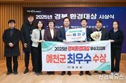 [신경북뉴스] 예천군은 22일 경상북도 주관 ‘2025년 경북환경대상’ 평가에서 최우수상을 수상하며 환경 전반에 걸친 우수한 정책 추진 성과를 인정받았다. 경북환경대상은 도내 시·군을 대상으로 ▲기후환경정책분야 ▲환경관리분야 ▲맑은물정책분야 ▲정부합동평가 지표 등 4개 분야에 대해 평가를 실시해 우수 지자체를 선정하는 상이다. 예천군은 올해 탄소중립 실천을 위한 군민 맞춤형 교육 확대, 클린예천 만들기 정책 추진, 취수원 관리와 수질오염사고 대응 역량 강화 등 전 분야에서 고른 성과를 거두며 최우수라는 평가를 받았다. 예천군 관계자는 “이번 경북환경대상 최우수 수상은 탄소중립 실천 맞춤형 교육, 클린예천만들기와 같이 군민과 함께 추진해온 환경정책의 성과”라며, “앞으로도 기후위기 대응과 쾌적한 환경 조성을 위해 실효성 있는 환경정책을 지속적으로 추진해 나가겠다”고 밝혔다.
