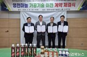 [신경북뉴스] 영천마늘농촌융복합사업단이 영천마늘을 활용한 가공기술을 민간에 이전하는 계약을 지난 25일 농업기술센터에서 체결했다. 이번 협약을 통해 사업단이 개발한 마늘 가공기술과 지식재산권이 지역 업체로 이전되며, 이를 기반으로 사업단과 기업 간 협력 체계가 마련됐다. 해당 기술이전에는 농업회사법인 ㈜세찬, 농업회사법인 ㈜우진, 영천시약용작물산업화지원센터가 참여했다. 이들 기관과 기업은 영천마늘을 활용한 제품 상용화에 힘을 모으기로 했다. 사업단은 단계별 제품 개발을 추진해 왔으며, 지난해에는 꿀마늘, 마늘생강샷, 마늘꿀스틱 등 마늘가공제품 3종과 남성건강, 관절건강 등 건강기능식품 2종을 개발했다. 올해에는 마늘 음료 3종과 함께 제품 포장 개선 등 제품군 다양화에 집중했다. 이번 기술이전은 연구개발 성과를 민간 사업화로 확산하는 과정으로, 지역 기업의 매출 증가에 긍정적인 영향을 미칠 것으로 기대되고 있다. 최재열 영천마늘농촌융복합사업단장은 "이번 기술이전은 공공에서 축적한 연구 성과를 민간과 공유하는 중요한 전환점"이라며, "앞으로도 제품 고도화와 유통·마케팅을 병행해 영천마늘 가공산업 생태계 조성에 적극 노력하겠다"