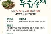 [신경북뉴스] 울진군 금강송면 전곡리에서 봄철 대표 산나물인 두릅을 주제로 한 ‘제5회 전곡리 두릅축제’가 오는 4월 30일부터 5월 2일까지 3일간 전곡리 마을 일원에서 개최한다. 전곡리마을주민회와 (사)경상북도숲해설가협회 울진군지부가 공동 주관하고 울진군과 한울원자력본부가 후원하는 이번 축제는‘지금 가장 맛있는 봄, 전곡리에서!’라는 슬로건 아래 지역 농산물 홍보와 체험 중심의 다양한 프로그램으로 꾸며진다. 축제 기간 동안 방문객들은 두릅을 비롯한 신선한 농산물 직거래 장터를 이용할 수 있으며 산채비빔밥 체험 및 시식, 찰떡 만들기 체험 등 먹거리 프로그램과 함께 숲길 트레킹, 전통놀이 체험 등 가족 단위 관광객이 즐길 수 있는 다양한 체험행사도 운영된다. 또한 노래자랑과 작은 음악회, 색소폰 및 하모니카 공연 등 다채로운 문화행사와 함께 마을 특산물 경매, 새끼꼬기 경기, 제기차기 등 주민과 관광객이 함께 어울릴 수 있는 참여형 프로그램도 운영될 예정이다. 특히 이번 축제는 자연과 함께하는 농촌체험과 지역 공동체의 따뜻한 정을 느낄 수 있는 자리로, 봄철 울진을 찾는 관광객들에게 특별한 추억을