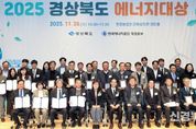 [신경북뉴스] 경상북도는 26일 포항시 농업인교육복지관 장미홀에서 ‘2025 경상북도 에너지대상’ 시상식을 개최했다. 행사에는 150여 명의 시군 공무원 및 에너지산업분야 기업·기관·단체를 비롯해 양금희 경상북도 경제부지사, 정군모 한국에너지공단 대구경북지역본부장, 박해득 한국전력공사 포항지사장, 윤성학 한국전기안전공사 경북동부지사장, 김찬연 한국에너지기술인협회 대구경북지부장이 참석했다. 경상북도 에너지대상은 에너지효율향상과 신재생에너지 보급 등을 통해 지역 에너지산업 발전에 이바지한 유공자를 발굴해 포상하고, 범도민적 에너지 절약 문화를 확산하고 저소비·고효율 에너지 구조 전환을 촉진하기 위해 매년 개최하고 있다. 올해 23회째를 맞이하는 이번 시상식은 단체부문 상장으로 우수기업 5개, 우수 시군 5개, 개인 표창으로는 민간인 10명, 공무원 5명 등 총 25명이 도지사 표창 수상의 영예를 안았다. 먼저, 기업부문 대상은 신재생에너지 보급 확대와 개발이익 지역 환원 사업모델 개발 등 경상북도 에너지 산업 발전과 정책에 이바지한 경상북도개발공사(사장 이재혁)에 돌아갔으며, 최우수상은 (재)포항테크노