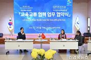 [신경북뉴스] 경북교육청은 24일, 본청 웅비관에서 베트남 호찌민시교육훈련청과 ‘교육 교류 협력 업무협약(MOU)’을 체결했다고 밝혔다. 협약식에는 임종식 경북교육감을 비롯한 경북교육청 관계자 5명이 참석했으며, 호찌민시교육훈련청에서는 청장을 대신해 부청장을 포함한 5명의 대표단이 참석했다. 협약을 통해 양 기관은 △학생들의 교육 및 문화 교류 △교직원들의 교육 교류 및 연수 △관할 학교 간의 자매결연 및 교육 교류 △양 기관이 합의한 교류 활동 및 연관 사업 등에 적극적인 협력관계를 유지하며 상호 글로벌 역량을 강화하고, 상호 이해와 우호를 증진하기로 합의했다. 경북교육청은 이번 협약을 계기로 경북 학생들에게 베트남 교육 현장을 직접 경험할 기회를 제공해 글로벌 시민 역량을 강화하고, 호찌민시 학생들에게는 한국의 교육혁신 모델을 경험할 수 있는 기회를 제공함으로써 양국 교육 발전에 이바지할 것으로 기대하고 있다. 임종식 교육감은 환영사를 통해 “이번 협약은 양국의 학생과 교원이 세계로 나아가는 발판이 될 것”이라며, “호찌민시교육훈련청과의 긴밀한 협력을 통해 미래 교육을 함께 열어가겠다”라고 말