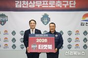 [신경북뉴스] NH농협 김천시지부와 김천시체육회가 김천상무프로축구단 홈경기 티켓북을 구매하며 지역 스포츠 활성화에 동참했다. 김천상무프로축구단은 2월 26일 NH농협 김천시지부와 김천시체육회가 각각 티켓북 구매 행사를 진행했다고 밝혔다. 오전에는 NH농협 김천시지부가, 오후에는 김천시체육회가 티켓북을 구매하며 지역 프로구단의 홈경기 흥행을 지원했다. 이번 행사는 김천상무가 지역을 대표하는 프로스포츠 구단으로 자리매김하는 가운데, 지역 기관과 단체의 지속적인 관심과 응원이 이어지고 있다는 점에서 의미를 더했다. 장문석 NH농협 김천시지부장은 "김천을 대표하는 프로축구단인 김천상무의 홈경기 활성화가 지역에 활력을 불어넣길 기대한다"며, 앞으로도 지역 스포츠 발전을 위한 지원을 이어가겠다고 말했다. 최한동 김천시체육회장은 "시민들이 함께 즐길 수 있는 스포츠 문화가 더욱 확산되길 바란다"며, 김천상무의 홈경기 응원 의지를 밝혔다. 이재하 김천상무 대표이사는 "김천상무 홈경기 흥행에 동참해주신 NH농협 김천시지부와 김천시체육회에 감사하다"며, 팬과 시민들이 함께 즐길 수 있는 경기 문화 조성을 위해 노력하겠다고 전했다. 한편, 김천상무는 2월 28일 김천종합운동장에