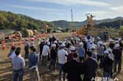 [신경북뉴스] 상주시는 지난 16일 중동면 죽암리 강창교 일원에서 시설(토목)직 공무원을 대상으로 ‘강창교 자연재해위험개선지구 정비사업’ 현장 기술견학을 실시했다. 이번 견학은 대규모 교량 건설사업의 핵심 공정인 기초 시공기술에 대한 이해를 높이고, 현장 중심의 품질‧안전관리 역량을 강화해 상주시 건설행정의 전문성을 한층 높이기 위해 마련됐다. 이날 견학의 핵심은 낙동강의 깊은 암반층을 굴착하는 RCD(Reverse Circulation Drilling, 역순환 굴착) 공법 시연이었다. 참석한 50여 명의 시설(토목)직 공무원들은 가설교량 위에서 교각(P6, P7) 구간의 대구경 기초말뚝 굴착 과정을 직접 참관하며, 수중 시공 시 요구되는 수직도 확보, 슬라임 제거, 굴착 안정성 관리 등 고난도 시공기술에 대한 실무 이해를 높였다. 특히 이번 견학은 단순한 공법 설명에 그치지 않고, 실제 현장에서 품질을 확보하는 과정을 직접 확인하는 체험형 교육으로 운영돼 의미를 더했다. 참석자들은 도로 성토부의 다짐 상태를 확인하는 현장밀도 시험과 콘크리트의 시공성을 점검하는 압축 및 슬럼프 시험, 공기량 측정 과정을 차례로