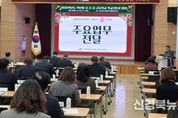 [신경북뉴스] 문경교육지원청은 2025년 12월 17일 문경교육지원청 3층 대회의실에서 관내 공·사립 유·초·중·고등학교 학교(원)장 및 교(원)감을 대상으로 2025학년도 학년말 학교 관리자 회의를 개최했다. 이번 회의는 오전에는 학교(원)장 회의, 오후에는 교(원)감 회의로 나뉘어 진행됐으며. 한 해를 마무리하며 주요 교육 현안을 공유하고, 동계휴가 기간 학생 생활지도 방안 및 맞춤형 교육 지원 성과를 확산하기 위해 마련됐다. 특히 문경교육지원청 학생맞춤통합지원 시범교육청으로 운영하며 체계 구축을 성공적으로 진행한 바, 이영분 주무관의‘2025 학생맞춤통합지원 성과 공유회’사례 발표 시간이 의미를 더한 시간이었다. 유진선 교육장은“미래를 여는 따뜻한 문경교육을 위해 한 해 동안 학교 현장에서 수고해 주신 교(원)장 선생님을 비롯한 모든 교직원 분들에게 감사의 말씀을 드린다. 동계휴가 기간에도 학생들의 안전이 보장되어질 수 있도록 관심을 가지고 지켜봐 주시기 바란다.”고 했다.