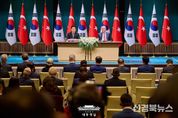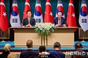 [신경북뉴스] 튀르키예를 국빈 방문한 이재명 대통령은 24일(현지시간) 앙카라 대통령궁에서 레제프 타이이프 에르도안 대통령과 양자회담을 통해 방산, 원자력, 바이오, 인프라, 인적·문화 분야 등에서 협력을 강화해 나가자는 데 뜻을 모았다. 양국 정상은 또 이러한 포괄적 협력을 원활히 추진하기 위한 '대한민국과 튀르키예공화국 간 전략적 동반자 관계에 관한 공동성명'을 채택했다. 이 대통령과 에르도안 대통령은 이날 단독회담에 이어 확대회담, 양해각서(MOU) 서명식을 순차적으로 가진 뒤 이 같은 내용을 담은 공동언론발표를 진행했다. 대한민국 대통령으로는 13년 만에 튀르키예를 국빈 방문한 이 대통령은 국부(國父)로 불리는 무스타파 케말 아타튀르크 영묘 헌화식과 대통령궁에서 열린 공식환영식에 참석한 후 에르도안 대통령과 1시간 43분에 걸쳐 정상회담을 했다. 이 대통령은 공동언론발표를 통해 "튀르키예의 한국전쟁 참전 75주년이자 저의 대통령 취임 첫해인 올해 '형제의 나라' 튀르키예를 방문하게 되어 매우 뜻깊게 생각한다"며 "양국은 2012년 '전략적 동반자 관계'를 체결하고 정무, 경제, 문화,