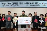 [신경북뉴스] 의성군은 2월 25일 신안상사 신화준 이사의 아너소사이어티 가입식을 개최했다고 밝혔다. 이날 행사에는 신화준 이사와 가족을 비롯해 손병일 경북사회복지공동모금회 사무처장, 김주수 의성군수, 강희경 의성군사랑의열매나눔봉사단장 등 관계자들이 참석해 의성군 15호 아너소사이어티 회원 탄생을 함께 축하했다. 신화준 이사는 의성군 3호 아너소사이어티 회원인 부친 신덕순 대표(2014년 가입)와 9호 회원인 모친 김송희 부대표(2018년 가입)에 이어 가입하며, 가족이 함께 나눔을 실천하는 ‘패밀리 아너 소사이어티’를 완성했다. 이는 지역사회에 나눔의 가치를 대물림하는 모범 사례로 지역사회에 따뜻한 울림을 전하고 있다. 신안상사는 곡물 가공업과 쌀 가공 기계 판매사업을 운영하는 향토중소기업으로, 유명 주조회사 등에 고품질 쌀가루를 납품하고 있다. 1998년 11월 국내 쌀 및 부산물 재처리 공장으로 시작해 2010년 경상북도 제1호 미분 공장으로 재탄생했으며, 현재 의성 단밀농공단지 내 3,100평 규모 부지에 도정·미분·주정 라인을 모두 갖춘 국내 최초의 통합 생산체계를 운영하고 있다. &nb