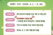 [신경북뉴스] 대구 동구청은 고향사랑기부제 활성화를 위해 4월 한 달간 ‘봄맞이 고향사랑 이벤트’를 진행한다. 고향사랑e음 사이트를 통해 대구 동구에 10만원 이상 기부하면 자동으로 응모가 되며, 참여자 전원에게 네이버페이 1만원권을 지급한다. 이와 함께 기본적인 혜택으로 기부 금액의 30% 한도 내에서 포인트가 제공되며, 해당 포인트를 사용하여 고향사랑e음 답례품몰에서 다양한 지역 특산품을 구매할 수 있다. 한편, 기부금 10만원까지는 전액 세액공제가 적용되고, 10만원 초과 20만원 이하는 44%, 20만원을 넘는 금액에 대해서는 16.5%의 세액 공제를 받을 수 있다. 김태운 동구청장 권한대행은 “고향사랑기부제는 지역 발전에 동참하면서도 기부자에게 실질적인 혜택이 돌아가는 뜻깊은 제도다. 이번 이벤트를 통해 동구와 특별한 인연을 맺는 기회가 되길 기대한다.”고 말했다.