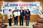 [신경북뉴스] 김천시는 2월 19일 김천시청 접견실에서 6·25전쟁 중 국가와 나라를 위해 헌신하고 돌아가신 무공수훈자의 유족에게 무공훈장을 전수하는 전수식을 개최했다. 이번 전수식에서는 고(故) 오길환 님과 고(故) 박규독 님, 고(故) 장준상 님, 총 세 분의 유족에게 화랑무공훈장이 전달됐다. 고인들은 6·25전쟁에 참여하여 전쟁 당시 무공훈장 수여가 결정됐으나, 전쟁 중의 혼란으로 교부받지 못해 오늘 유족들이 대리 수여하게 됐다. 유가족들은 이제라도 고인의 희생을 기리고 기념할 수 있는 무공훈장을 수여하게 된 것에 크게 기뻐하며 고마워했다. 배낙호 김천시장은 “지금이라도 무공훈장의 주인을 찾아드리게 되어 기쁘게 생각한다. 무공훈장 수훈은 개인을 넘어 가문에도 매우 자랑스러운 일로 김천시민들에게도 자긍심을 심어주는 계기가 될 것이다.”라고 했다. 한편, 이번 전수식은 6·25전쟁 무공훈장 찾아주기 조사단에서 추진하고 있는 ‘6·25전쟁 무공훈장 찾아주기 사업’의 일환으로 진행됐으며, 조사단에서는 2019년부터 2025년 12월까지 3만 5천여 명의 무공훈장 수훈자를 찾아 훈장을 전했