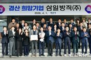 [신경북뉴스] 경산시는 2026년 2분기 경산 희망기업으로 삼일방직(주)을 선정하고, 1일 시청 대회의실에서 선정식을 열어 트로피와 현판을 전달했다. 삼일방직(주)은 진량읍에 위치한 섬유 제조 기업으로, 45년 이상 업력을 쌓아왔다. 2010년에는 부설 연구소(PILOT 공장)를 설립해 신제품 개발과 공정 개선에 힘썼으며, 2013년에는 섬유업계 최초로 ‘월드클래스 300 프로젝트’에 선정된 바 있다. 2017년에는 미국 애틀란타의 중견 방적기업 뷸러 퀄리티얀스(BQY)를 인수하고 현지화 및 단계적 설비 투자를 통해 미주와 유럽 시장 진출의 기반을 마련했다. 삼일방직(주)은 근로자의 자기계발 교육비와 학자금 지원, 근로복지기금 운영 등 복지 향상에도 주력해왔다. 이 같은 노력 덕분에 창립 이후 노사분규가 한 차례도 발생하지 않았으며, 상생 협력의 노사 문화를 구축했다. 노희찬 삼일방직(주) 대표는 지역기업으로서 책임감을 강조하며, “경산 희망기업으로 선정되어 지역기업으로서 책임감이 크다”며 “45년 역사와 축적된 기술력으로 개발한 친환경 섬유, 특수 섬유를 기반으로 지역은 물론 세계 섬유 산업 발전을 견인하는 글로벌 기업이 되겠다”고 밝혔다. 이도형 경산시장