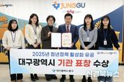 [신경북뉴스] 대구 중구는 ‘2025년 청년정책 활성화 유공’ 분야에서 대구광역시 기관 표창을 받았다고 밝혔다. 대구시는 청년정책 전담 부서를 신설한 2017년 이후, 우수한 청년정책 추진 성과를 거둔 기초자치단체를 대상으로 표창을 수여한다. 대구 중구는 청년 주거 안정과 경제적 부담 경감을 위해 청년 사업자 임대료 지원, 청년 부동산 중개보수 및 이사비 지원 등 지역 정착형 사업을 대구 지역 지자체 최초로 추진해 왔다. 또한 행정안전부 주관 ‘2025년 청년마을 만들기’ 공모사업에 선정돼 청년친화도시 기반을 마련했으며, 청년 소통과 교류의 거점인 중구 청년지원센터 ‘잇플’을 개소해 청년 활동 공간을 확충했다. 이와 함께 ‘중구 청년의 날’ 행사와 청년 팝업 클래스 등 청년 맞춤형 문화 행사를 운영하고, 2030 청년창업지원센터와 북성로 청년창업클러스터를 중심으로 청년 친화형 일자리 환경과 창업 기반을 구축하는 등 다양한 분야에서 청년을 위한 실질적인 정책을 추진했다. 아울러, 중구보건소와 대구행복기숙사 간 ‘청춘 心쿵 프로젝트’ 업무협약을 체결하는 등 청년 건강증진을 위한 정책도 병행 추진해 왔다